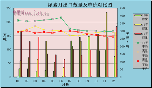近日國家海關(guān)部門公布2015年12月尿素出口183.43萬噸(實物量,下同),2015年全年我國尿素總出口數(shù)量1374.80萬噸,較2014年全年1361.55萬噸的出口總量增長了0.97%。這意味著2014年的尿素出口總量的新高已成為過去,雖我國尿素出口總量仍在不斷增加,但我們仔細(xì)分析便會發(fā)現(xiàn)2015年尿素出口平均單價僅286.5美元/噸,2014年尿素出口平均單價為294.4美元/噸,同比降低了2.68%。為什么在出口價格走低的情況下,尿素出口總量卻再創(chuàng)新高呢?且聽中國化肥網(wǎng)分析師小孫慢慢道來。